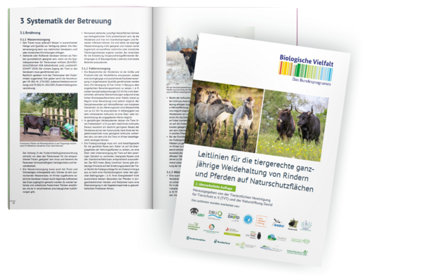 Die Leitlinien für die tiergerechte ganzjährige Weidehaltung von Rindern und Pferden auf Naturschutzflächen wurden in 2025 überarbeitet und werden der Tierärztlichen Vereinigung für Tierschutz e.V. (TVT) und der Naturstiftung David herausgegeben.